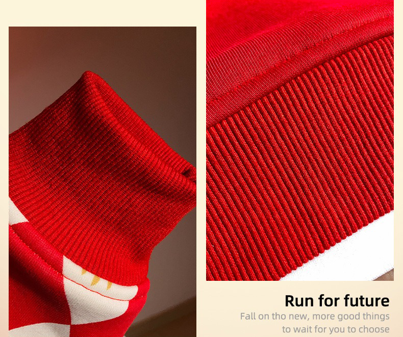 Boys Red Geometric Sweatshirt and Black Pants 2 Pieces Fleece Outfit Set