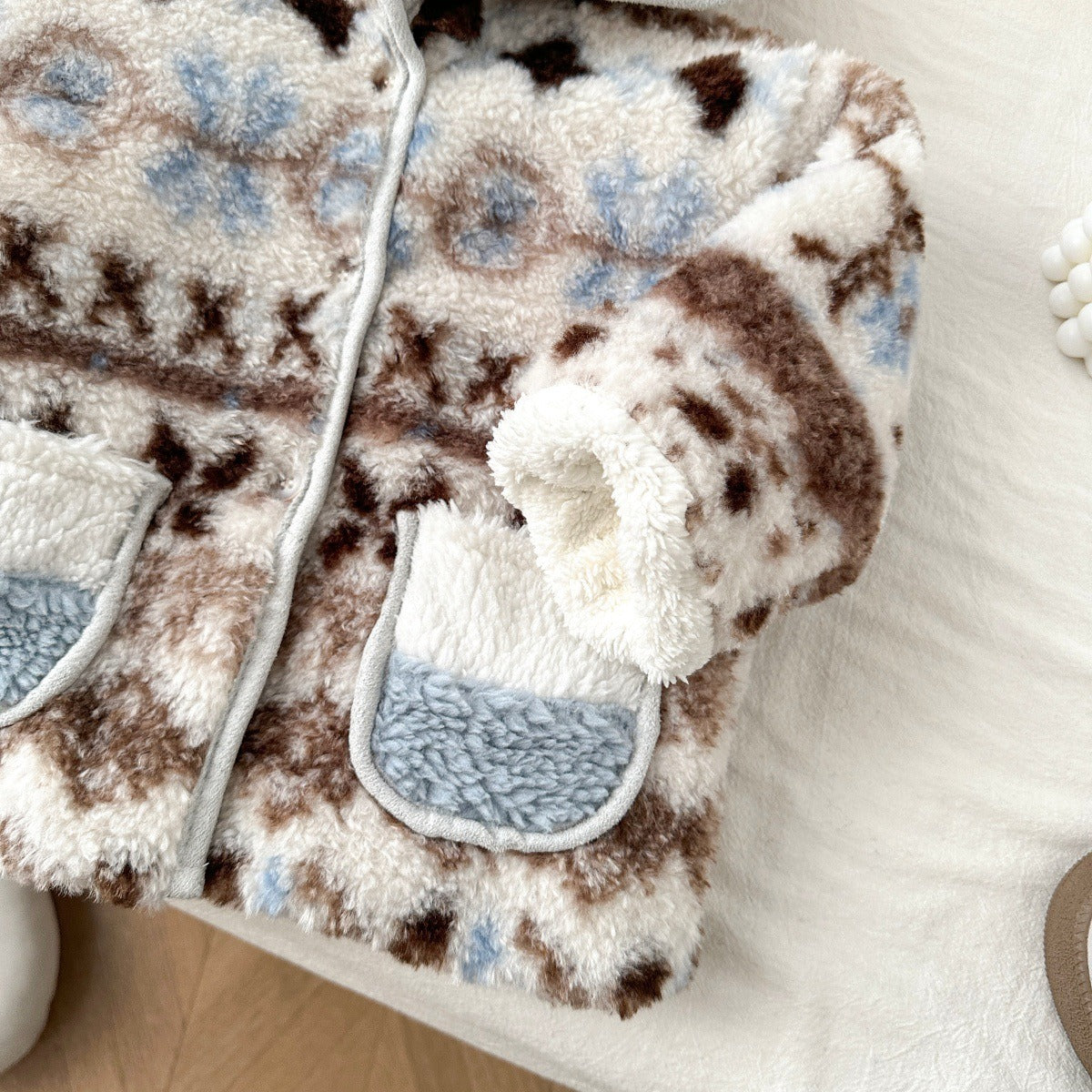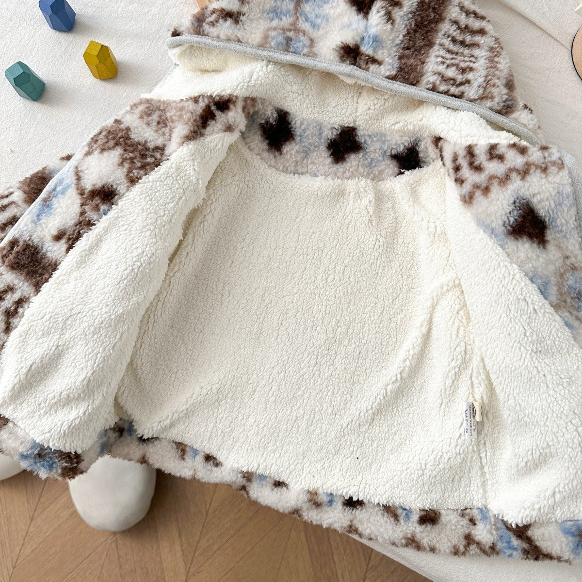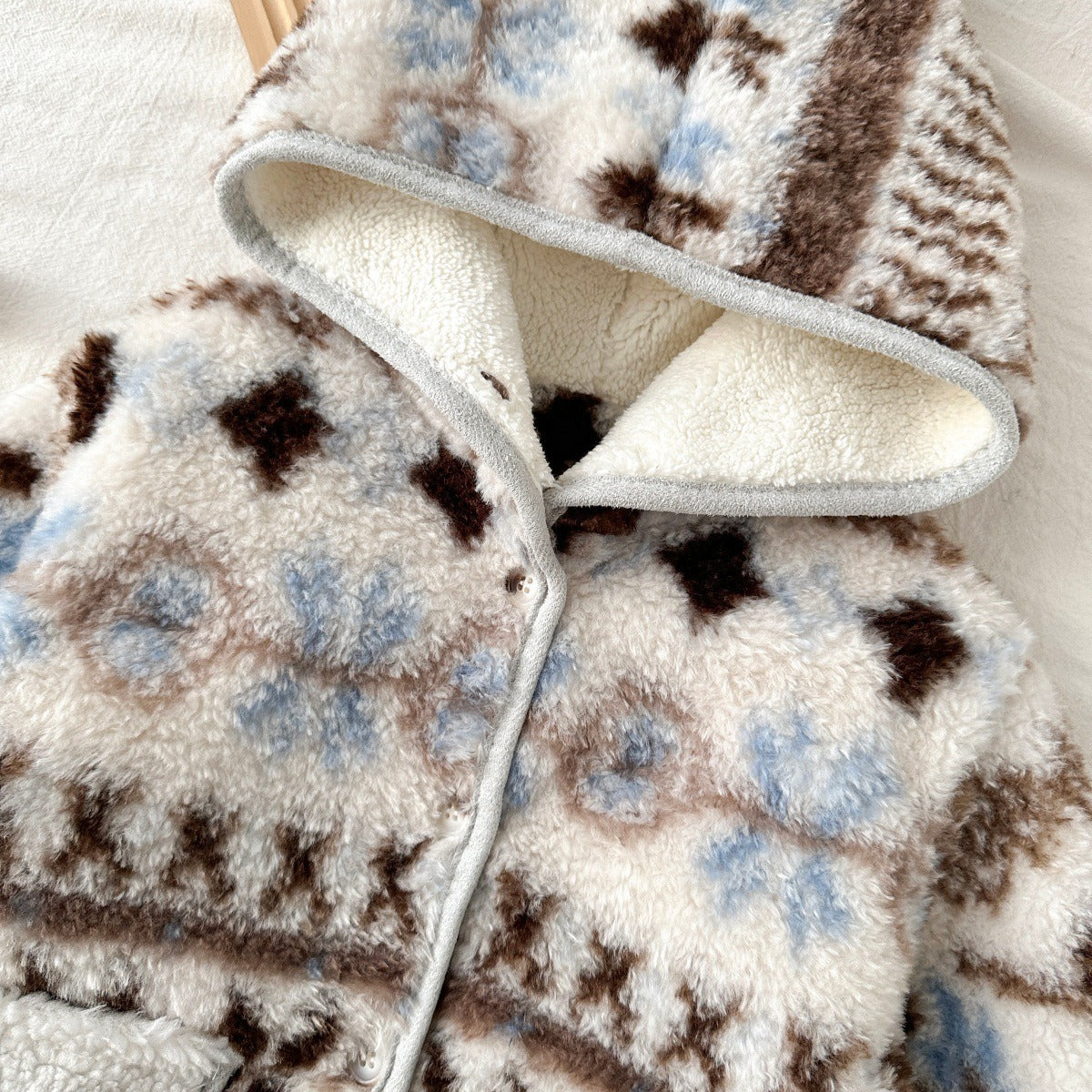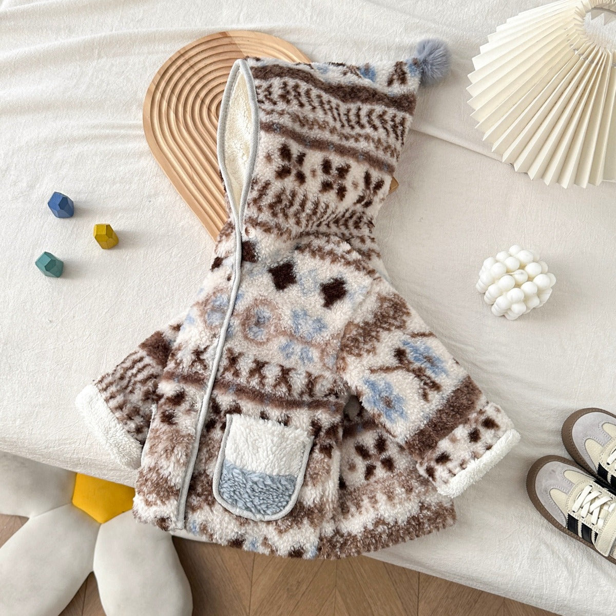 Girls Warm Thick Outerwear Fleece Hooded Coat with Cute Two Pockets At the Front